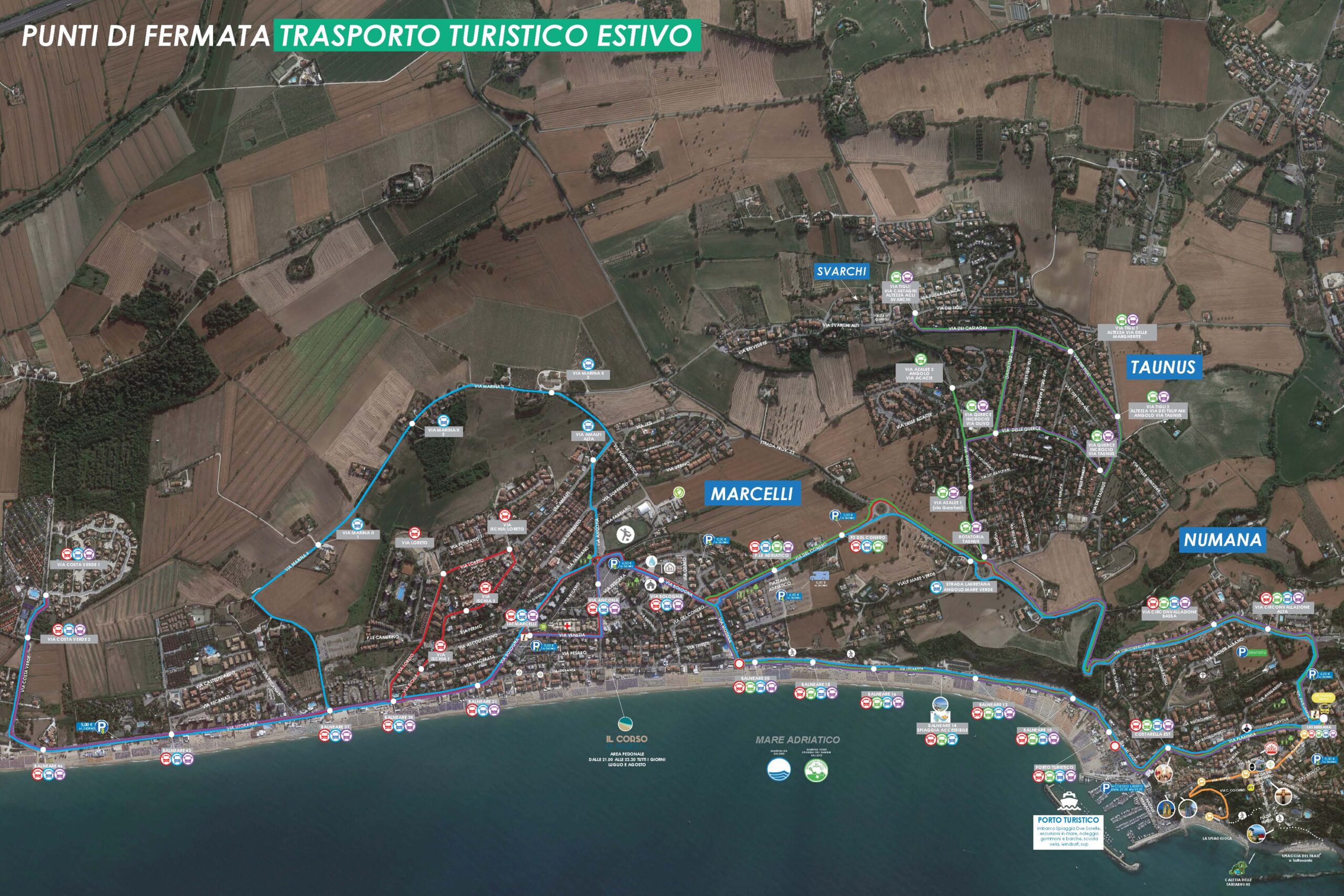 Dal Bagno 43 De Angelis Village potrai raggiungere i maggiori punti d’interesse di Numana per consultare tutti gli orari e le fermate clicca qui